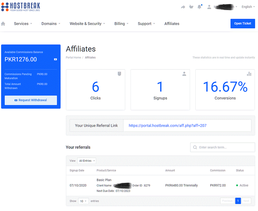 At Hostbreak, you can earn money online in Pakistan in a blink with our superior free web hosting affiliate marketing program. All you have to do is to sign up for our affiliate program and become a partner. You will have to share your affiliate link and promote our services wherever you find potential customers and target audiences. As a potential lead approaches us and we get the sale, your commission will be automatically credited to your account. You can view your earnings and get it deposited whenever you want. So, do not hesitate and join our earn money online in Pakistan with web hosting affiliate marketing program now!